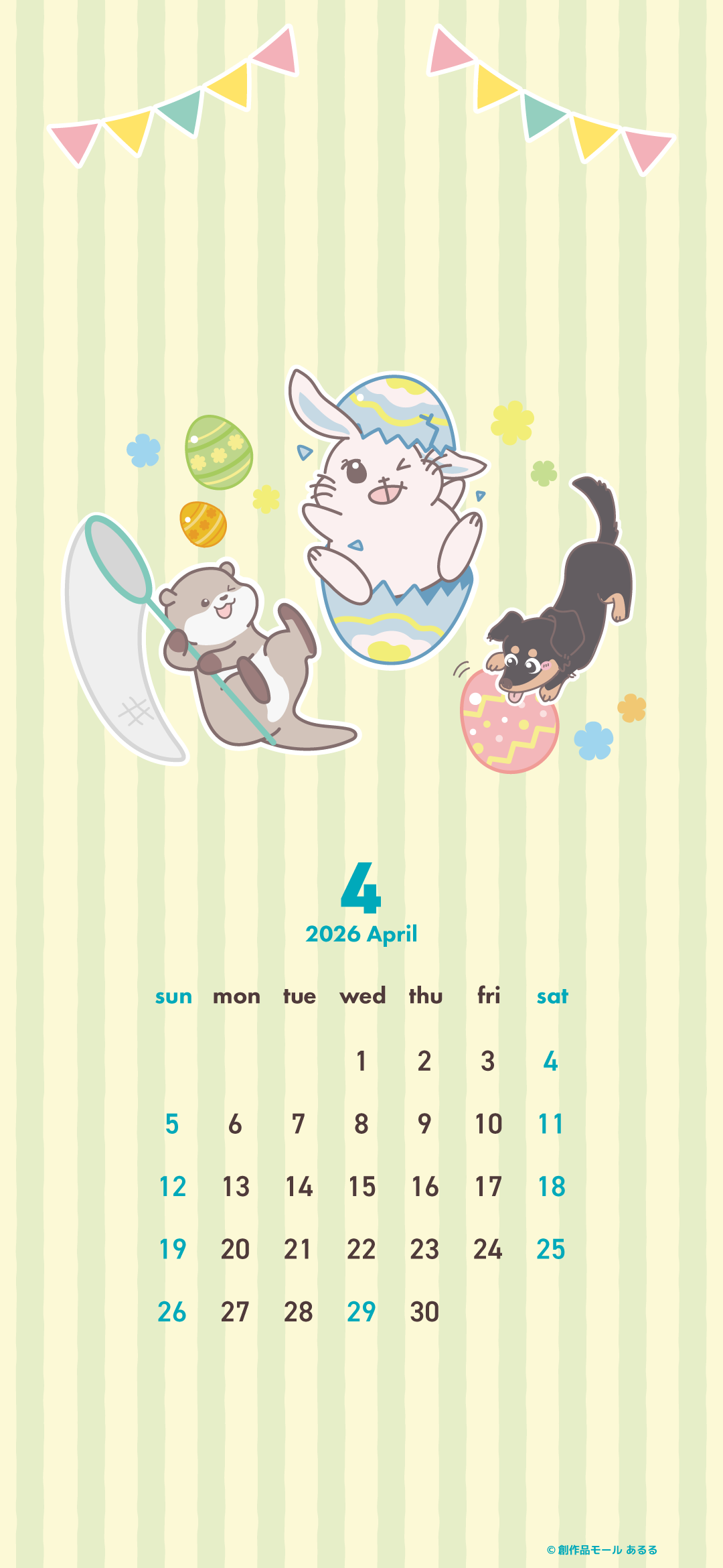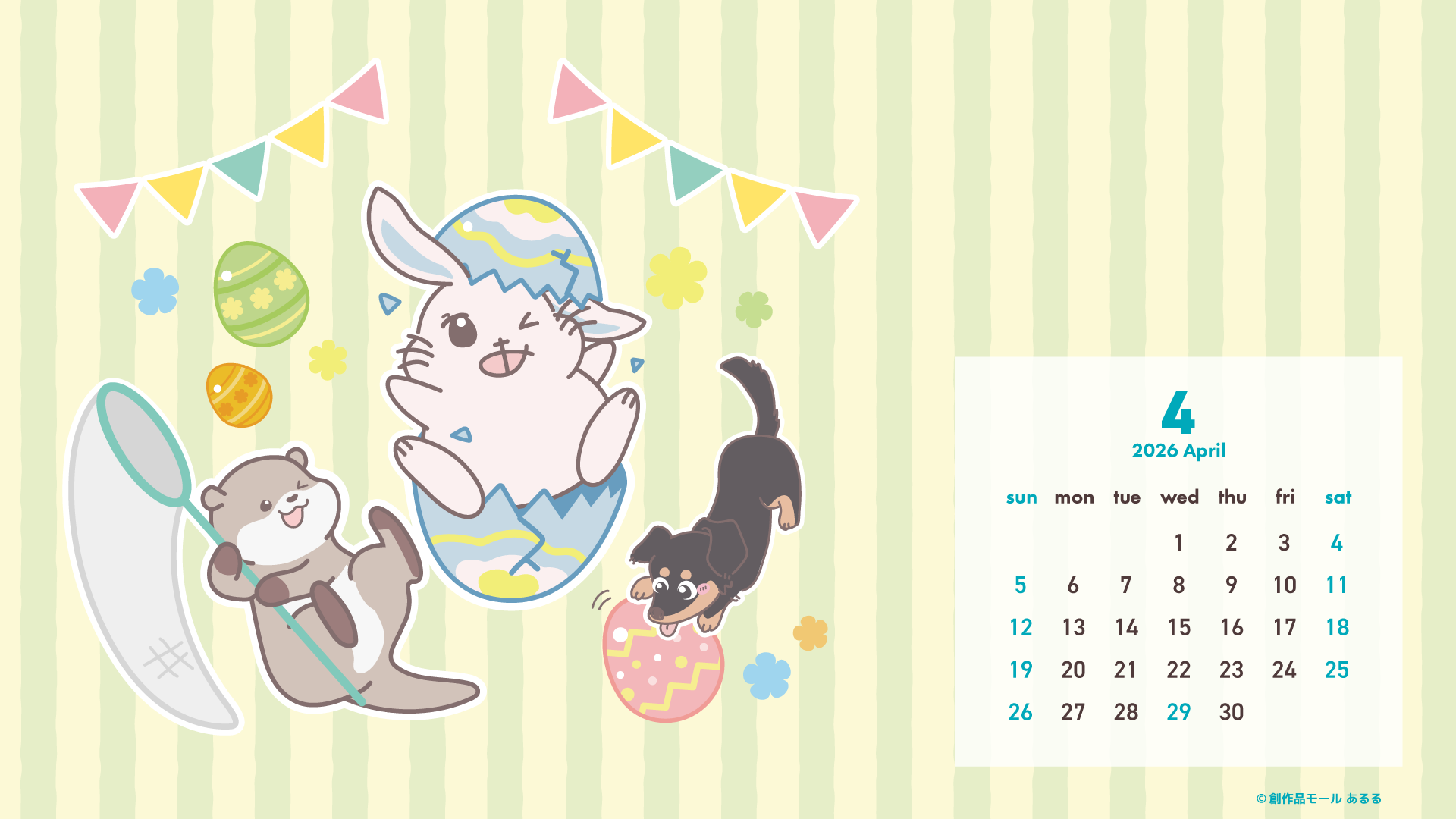 あるるうさぎ2026年4月版カレンダーを配布中!スマホやPCの壁紙にぜひお使いください。